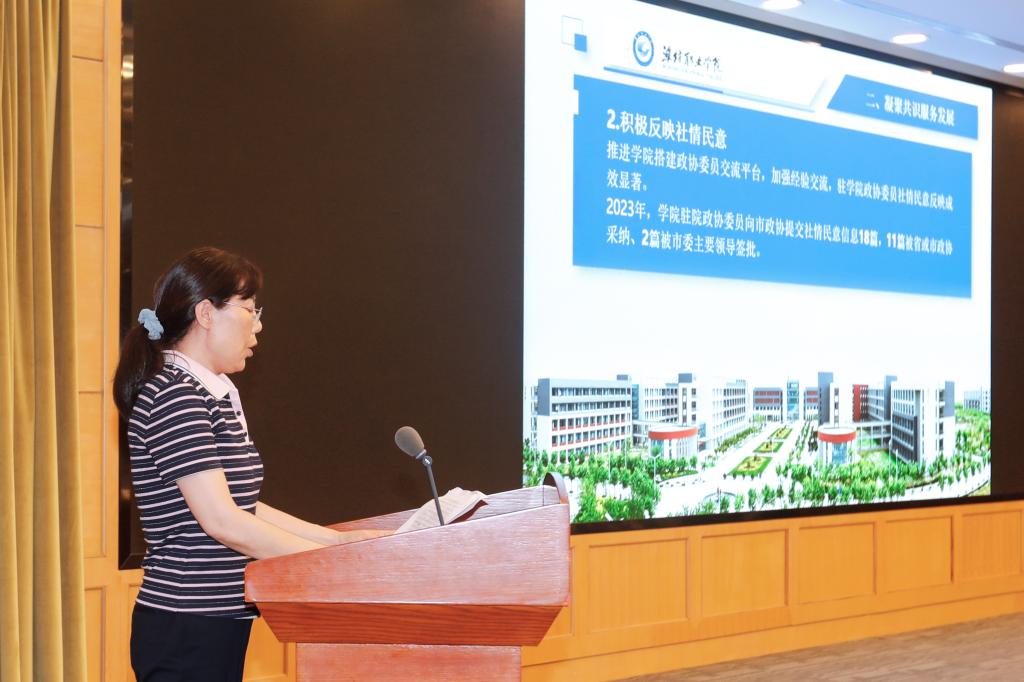 会上,潍坊市十四届市政协委员、beplay全站appbeplay全站app首页副院长陈美霞同志,以“不忘初心忠诚履职,努力服务更好潍坊建设”为题,从依托两个学习平台,提升思想理论水平;做好履职三篇文章,凝聚共识服务发展;夯实履职一个基础,促进职教赋能新质生产力三个方面做了精彩汇报,赢得阵阵掌声。