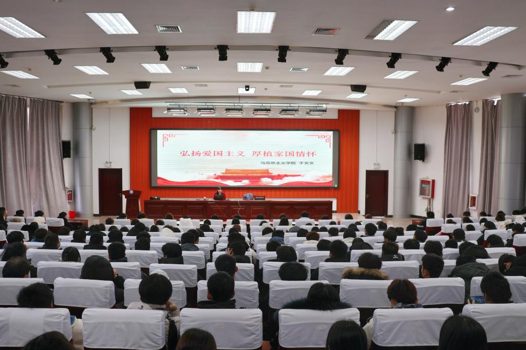 12月21日,第107场人文与思政讲座在滨海校区图书馆报告厅举行。马克思主义beplay(中国)的于文文老师作题为“弘扬爱国主义,厚植家国情怀”的讲座,2023级300余名学生聆听讲座。