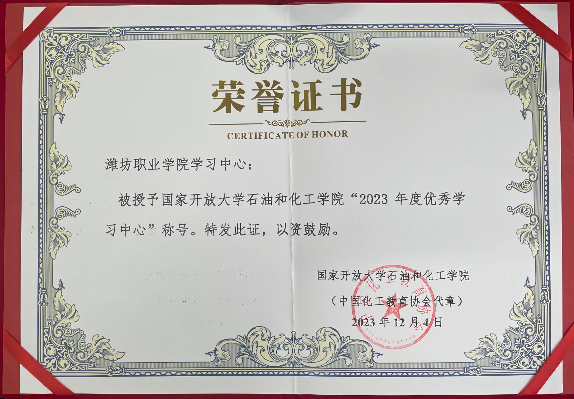 beplay(中国)获评国家开放大学石油和化工beplay(中国)“2023年度优秀学习中心”