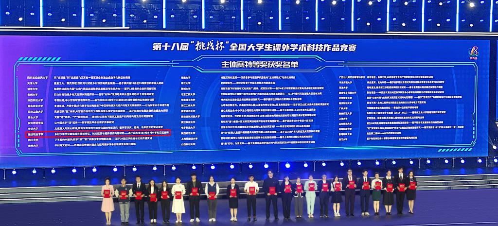 “挑战杯”全国大学生课外学术科技作品竞赛已举办十八届,每两年一届,目前已成为覆盖全国所有高校、面向全体高校学生、影响最大的赛事活动之一。本届竞赛由共青团中央、中国科协、教育部、中国社会科beplay(中国)、全国学联、贵州省人民政府共同主办,吸引全国2000多所高校、250多万学生参赛,作品数量40余万。经过校级初赛、省级复赛和全国决赛,本届竞赛主体赛共有713个项目进入全国决赛终审答辩,最终评选出特等奖117个,其中职业院校获特等奖8项,我院为其中之一。