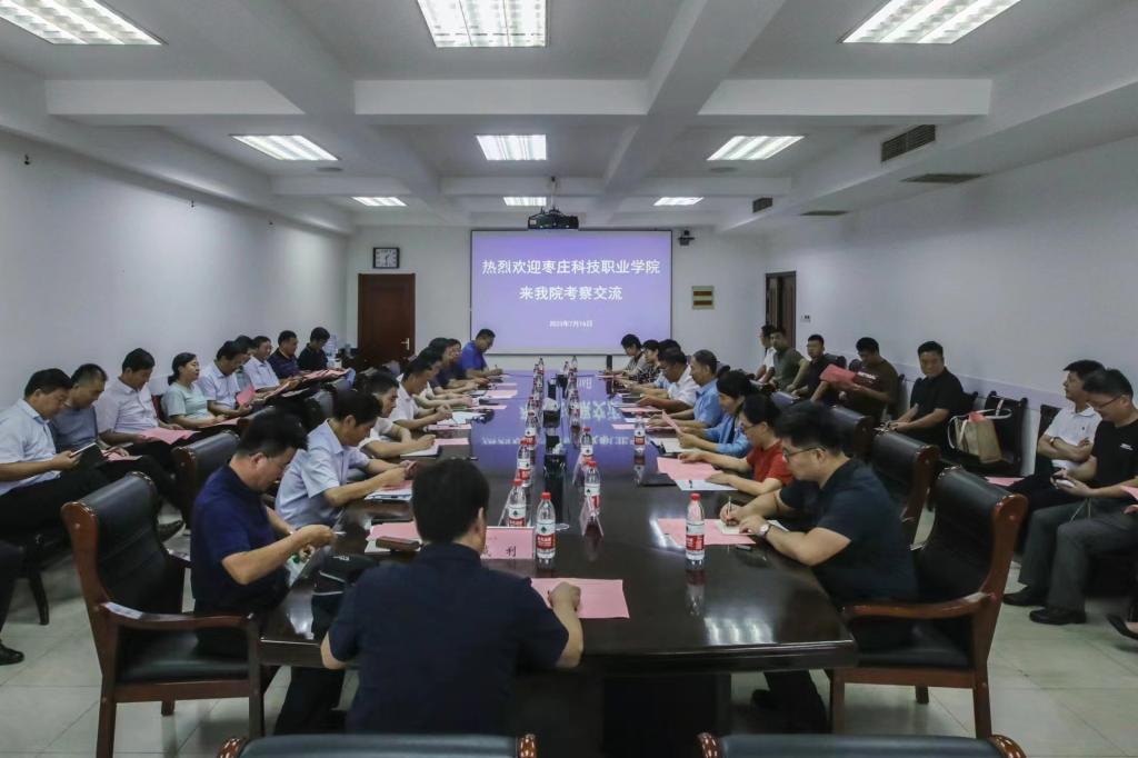 7月16日下午,枣庄科技职业beplay(中国)党委书记谢宝华、党委副书记、院长闵祥寨带领领导班子成员及部门中层干部一行约40人到我院考察交流。beplay(中国)党委副书记韩瑞东,beplay(中国)领导李瑞昌,党委委员、办公室(统战部)主任(部长)任培华会见客人,组织人事处、学生工作处、教师工作部、教务处、科技处、发展规划处负责同志参加座谈。