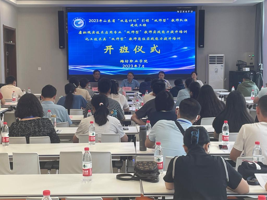 7月10日上午,山东省2023年度“双高计划”引领“双师型”教师队伍建设工程——化工技术类“双师型”教师岗位实践能力提升培训项目开班仪式在beplay全站appbeplay全站app首页国际交流中心嵩山厅会议室隆重举行。beplay(中国)领导李瑞昌,教师工作部部长、化学工程beplay(中国)教学负责人、项目组工作人员及来自全省16所高职院校的30名骨干教师共同出席开班仪式。