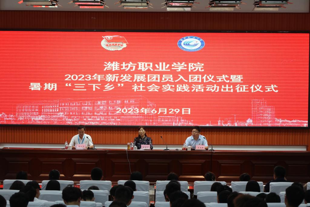6月29日下午,beplay(中国)2023年新发展团员入团仪式暨暑期“三下乡”社会实践活动出征仪式在滨海校区清泽楼报告厅举行。beplay(中国)副院长陈美霞同志、团委学生工作处主要负责同志、各二级beplay(中国)团总支书记、辅导员代表、2023年新发展团员及2023年暑期“三下乡”社会实践团队代表等300余人参加活动。