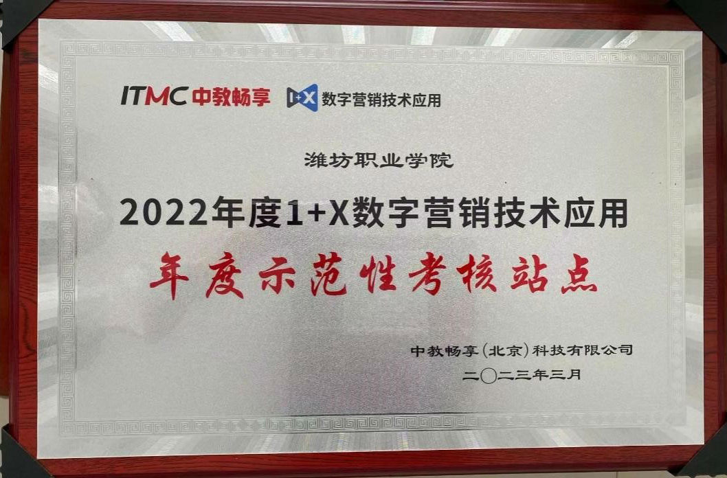 此次荣获“1+X”数字营销技术应用年度示范性考核站点是对我院工作的肯定,我院将继续抓住“1+X”制度试点的契机,深化三教改革,持续推进“岗课赛证”融通,构建完善的专业课程体系,为社会培养数字化营销的专业技能人才。(付晓佳 管可供稿)