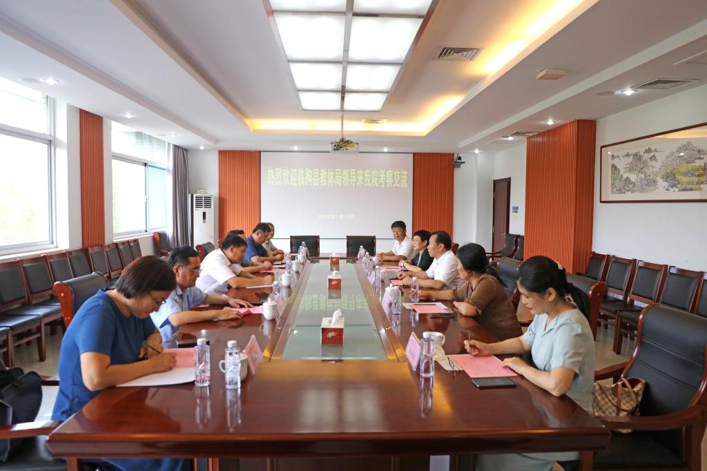 7月14日,临朐县教体局党组书记张学一行来我院考察交流。beplay(中国)党委委员、副院长贺志强会见客人,教务处、科技处、国际商务beplay(中国)相关负责人陪同考察交流。