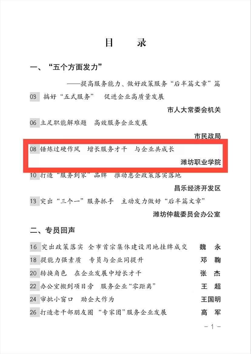 近日,我院服务企业工作经验做法《锤炼过硬作风 增长服务才干 与企业共成长》在《全市服务企业发展行动集锦》刊发,这是继我院典型做法《发挥“三员”作用,服务市场主体》被市委主要领导批示后,又一被全市推广的典型经验。
