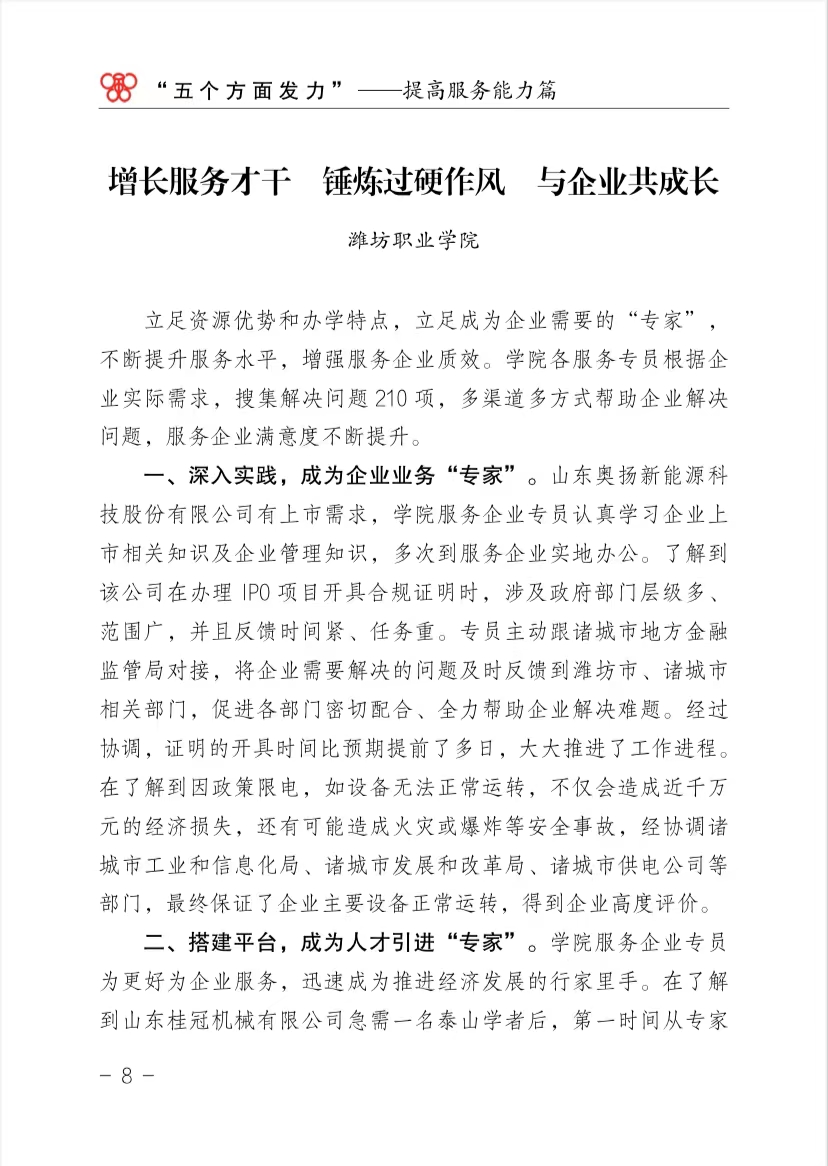 我院服务企业经验做法在《全市服务企业发展行动集锦》刊发