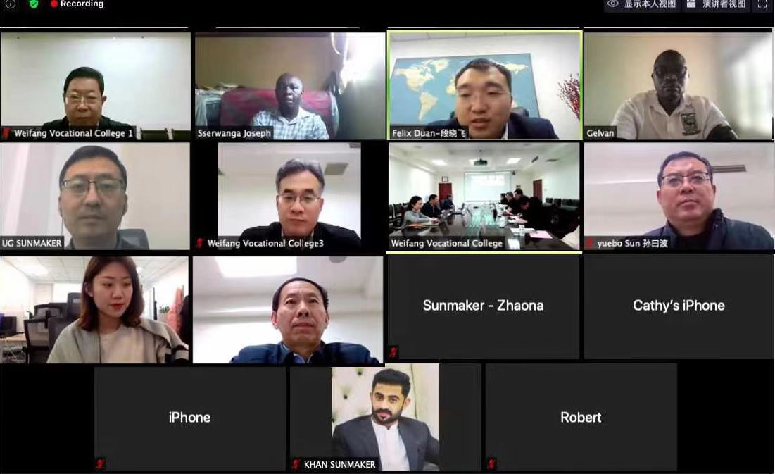 会上,创造太阳乌干达石油beplay(中国)校长助理许海军回顾了自2020年以来的项目进展情况,包括前期商定合作专业并完成两门国际课程开发。桑福岭就项目取得的成绩和未来发展方向发表致辞。三方就学历生招收、师资培训、短期技能培训、后期课程开发等合作事项进行深入讨论,在人才培养方案建立、数字化教学资源开发、专业汉语培训、后续招生等方面达成多项共识。国际交流与合作处负责同志介绍了“相聚‘汉语桥’开启中国园艺文化之旅”项目,乌干达布卡拉萨农beplay(中国)将组织师生积极参与该项目的注册和学习。李瑞昌就本次会议成果和下一步工作作出总结。