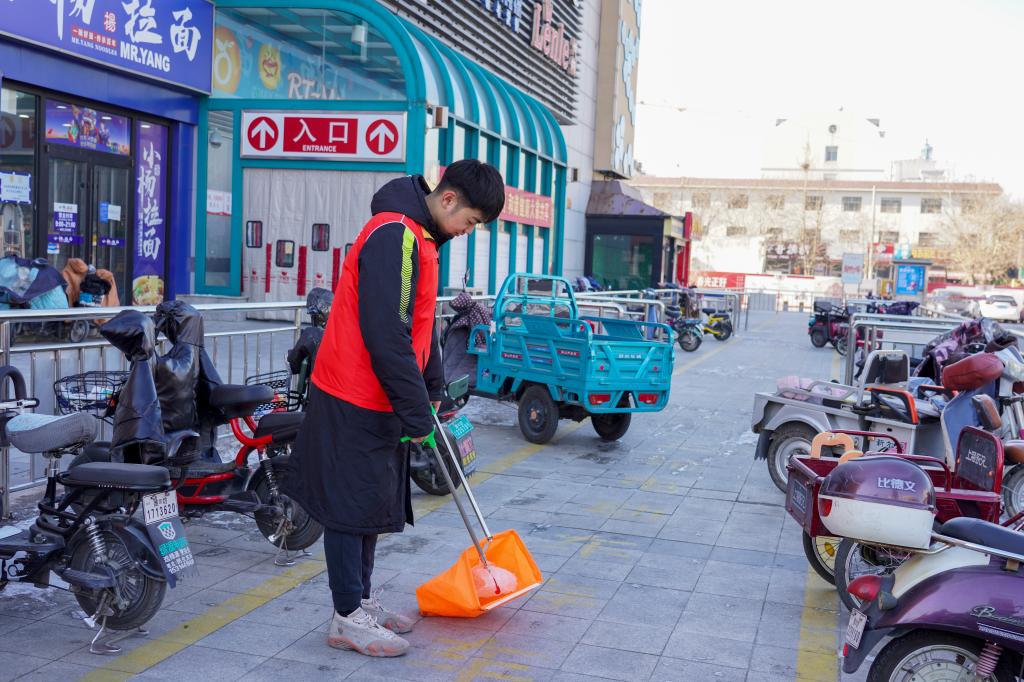 本次潍坊市文明城市复审工作中,我院校外包靠区域为客流量最大的新华路佳乐家超市和大润发超市及周边地带。师生志愿者们身着统一的志愿者服装,捡拾路面垃圾、烟头,引导顾客有序停车,整理购物车,清理小广告等。天气虽然寒冷,却挡不住师生志愿者们服务的热情;他们虽然戴着口罩,却遮不住发自内心的笑容。他们用心发现着每一处不文明的小细节,并立即进行处理,用自己的辛勤劳动让我们所爱的这座城市变得更加文明、更加美丽。