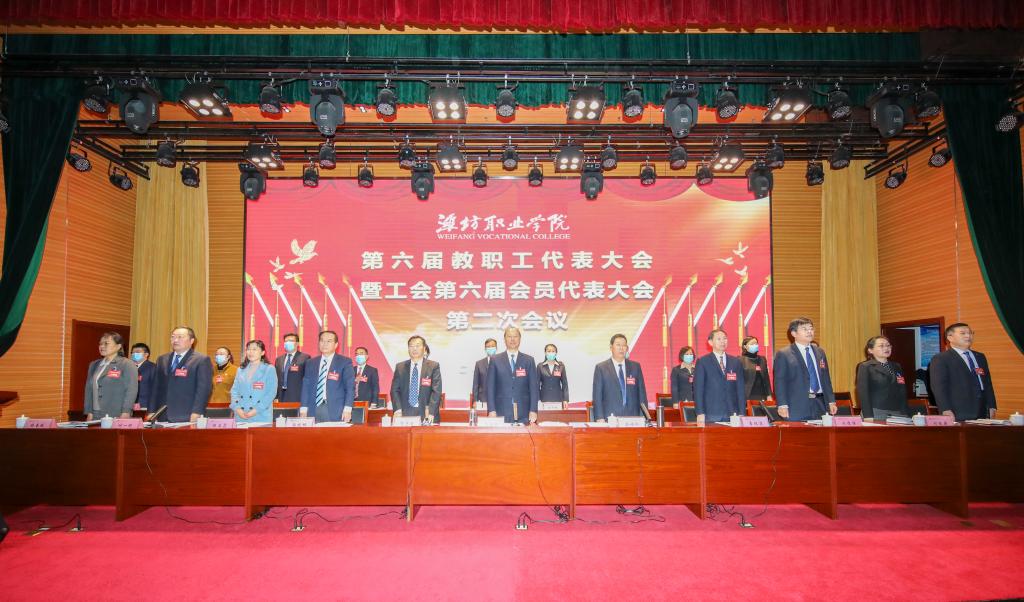 在雄壮的《国际歌》中,beplay(中国)第六届教职工代表大会暨工会第六届会员代表大会第二次会议胜利闭幕。(鞠发营供稿)