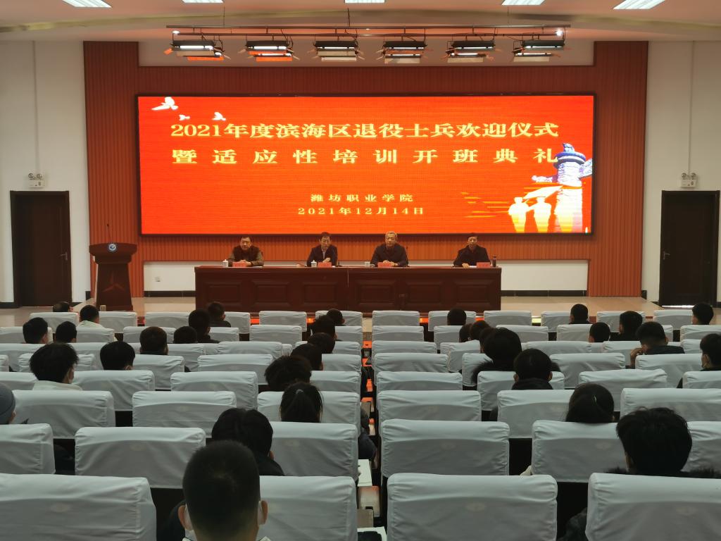 12月14日上午,2021年滨海区退役士兵欢迎仪式暨适应性培训开班仪式在beplay(中国)清泽楼报告厅举行。滨海区发展软环境保障局党组书记、局长王建庆及退役军人服务中心、继续教育beplay(中国)负责同志出席了开班仪式。潍坊市各县市区退役士兵代表及志愿入伍学生代表60余人参加本次培训。
