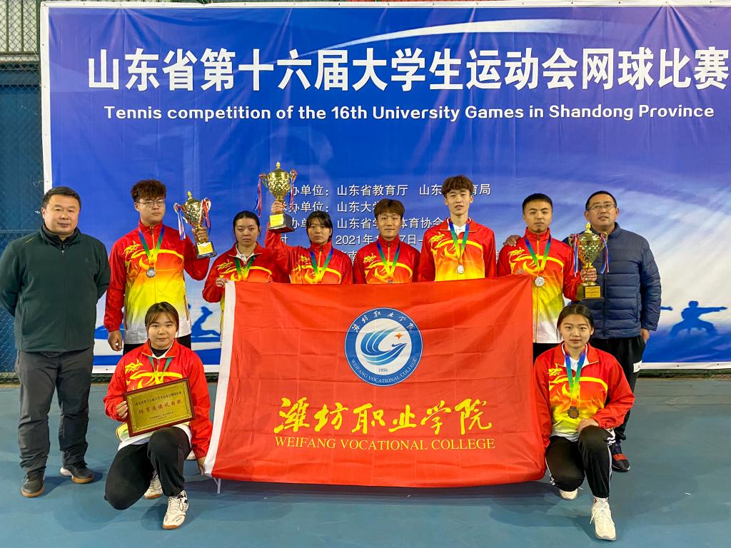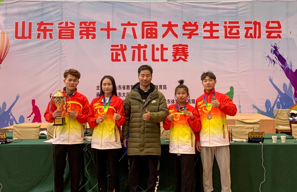近日,由山东省教育厅和山东省体育局主办的山东省第十六届大学生运动会历时三个月顺利落幕。在本届大学生运动会比赛中,我院代表队参加了田径、网球、武术三个大项的团体及单项赛事,共取得7金5银4铜的历届参赛最好成绩,其中田径项目排名乙组金牌榜第七位;武术项目排名女子乙组团体第七名;网球项目获得乙组团体总分第一名,女子乙组团体总分第一名,男子乙组团体总分第二名。田径和网球赛项分别获得“体育道德风尚奖”。6位运动员被评为“省级优秀运动员”,4位教师被评为“省级优秀教练员”。