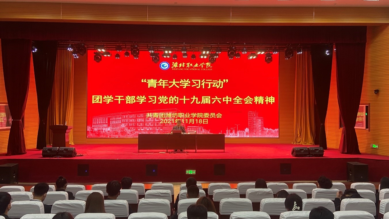11月18日下午,“青年大学习”行动beplay全站appbeplay全站app首页团学干部党的十九届六中全会精神主题学习会在滨海校区图书馆报告厅举行。团委主要负责同志、校学生会及各二级beplay(中国)学生会分会全体成员、青年团员代表等100余人参加学习。