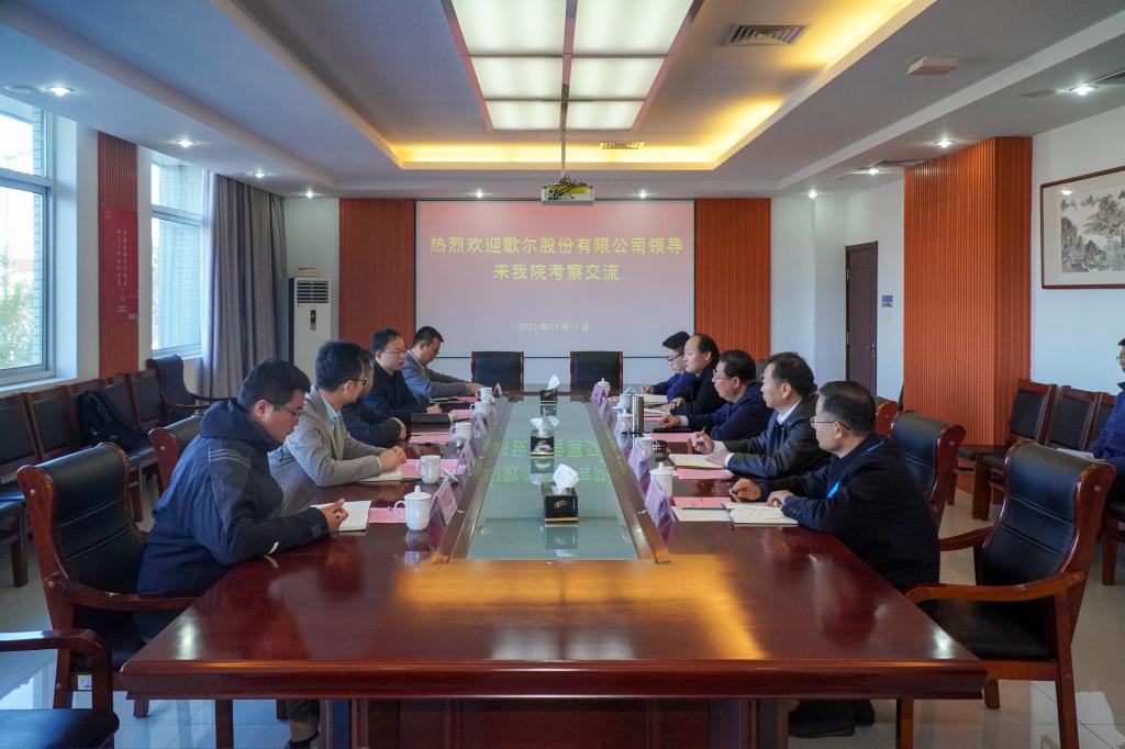 11月11日上午,歌尔股份有限公司员工管理部总经理魏文滨一行4人在潍坊市产教融合研究院院长田元训陪同下来我院考察交流。beplay(中国)党委副书记、副院长桑福岭,党委委员、副院长贺志强陪同考察交流。机电工程beplay(中国)、科技处主要负责同志参加座谈交流。