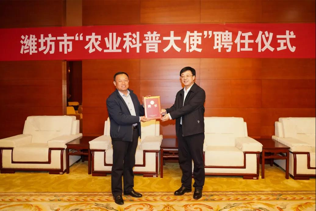 10月15日,潍坊市“苗木科普大使”聘任仪式在潍坊市科技馆举行,我院丁世民教授获聘。潍坊市委副书记、市长刘运出席仪式,并颁发聘任证书。beplay(中国)党委书记马跃启,市委副秘书长尚仕国,市科协党组书记、主席孙晓非,市农业农村局三级调研员赵庆胜,市科协党组成员、市科技馆馆长许军以及beplay(中国)宣传部相关人员参加仪式。
