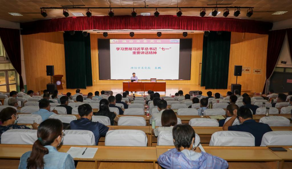 8月23日上午,学校在奎文校区16号楼报告厅举办学习贯彻习近平总书记“七一”重要讲话精神专题宣讲报告会。潍坊市学习贯彻习近平总书记“七一”重要讲话精神宣讲团成员、中共潍坊市委党校党史党建教研部副主任、副教授秦鹏作题为《学习贯彻习近平总书记“七一”重要讲话精神》的专题报告。学校党政领导班子成员、中层正职、主持部门工作的中层副职、各二级beplay(中国)正科级干部参加。党委副书记、副校长桑福岭主持报告会。