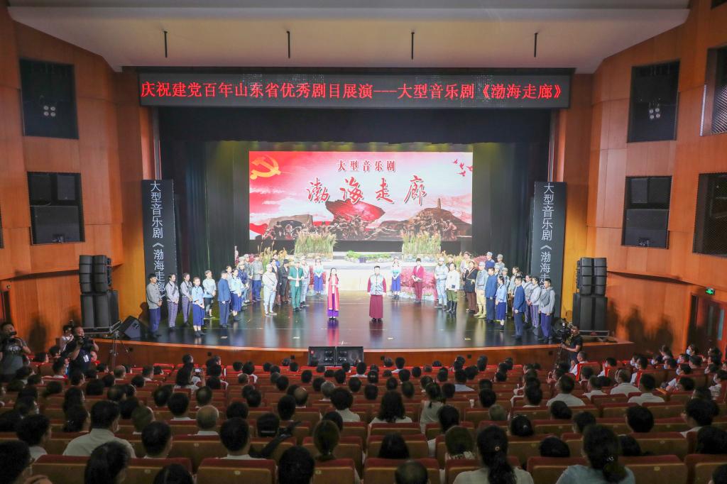 为庆祝中国共产党成立100周年,深化党史学习教育,经学校党委研究,7月5日晚,学校组织赴昌邑观看音乐剧《渤海走廊》。学校党委书记马跃启率学校党政领导班子成员、各部门中层正副职干部、教职工代表400余人观看演出。昌邑市委书记吕珊珊,市委副书记、市长李玉祥等领导陪同活动。