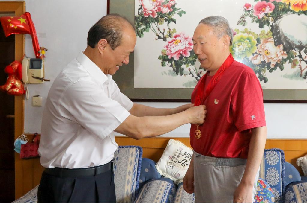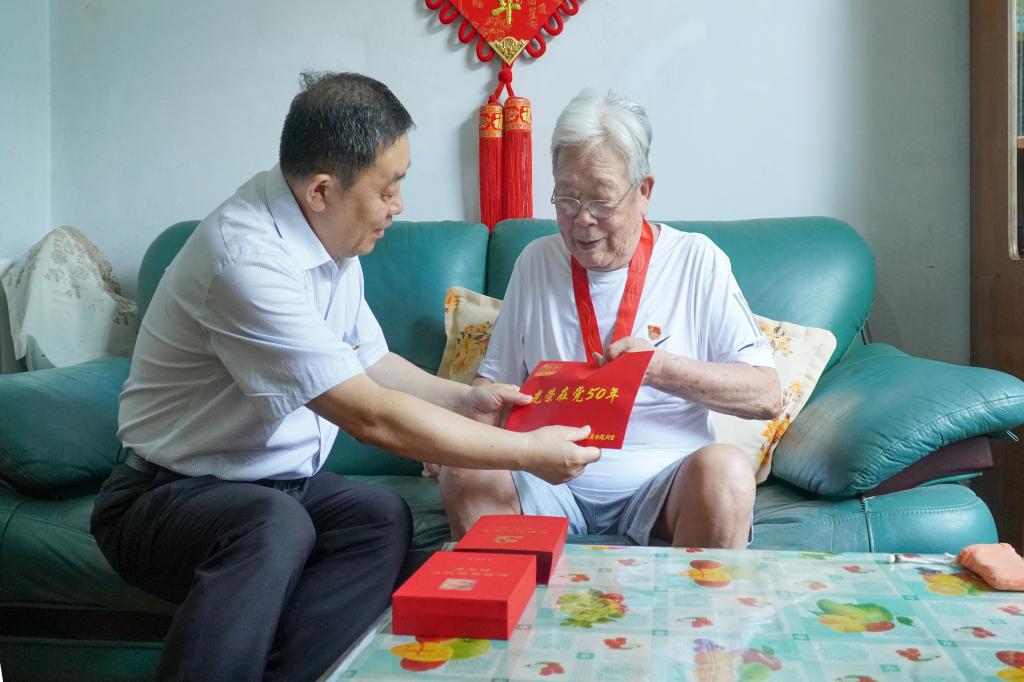 在中国共产党迎来百年华诞之际,按照中央部署和省委、市委安排, 6月26日至27日,beplay全站appbeplay全站app首页党委组织所有党政领导班子成员登门为每一位在党50年以上老党员颁发“光荣在党50年”纪念章,为他们送去党组织的关怀,并向他们致以崇高的敬意和节日问候。