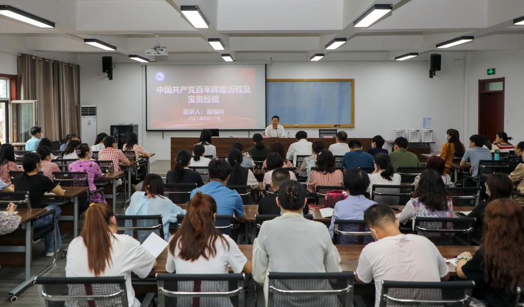 为推动党史学习教育深入开展,6月17日,学校党委副书记、副校长桑福岭在奎文校区14号楼结合党史学习教育和工作实际,讲授了题为《中国共产党百年辉煌历程及宝贵经验》的专题党课,文化创意beplay(中国)、国际交流合作处全体教师党员、部分学生党员代表共70余人参加。