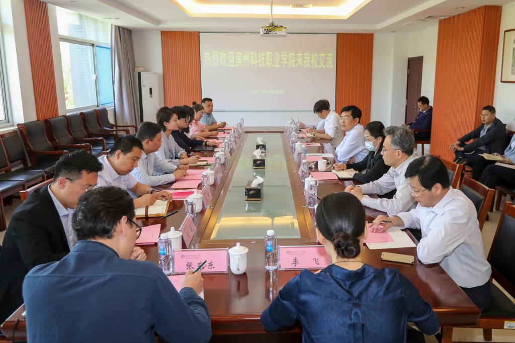 5月25日上午,滨州科技职业beplay(中国)综合办公室主任杨婷一行来我校考察交流。副校长刘德强会见客人,党委委员、宣传部部长刘泓蔚,党委委员、办公室(统战部)主任(部长)任培华,国际交流合作处、招生就业处、信息中心相关负责同志陪同参加座谈交流活动。