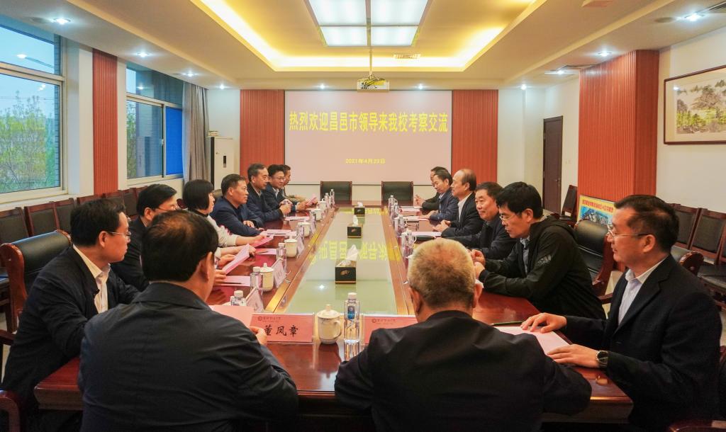 4月23日下午,昌邑市委副书记、市长李玉祥,昌邑市人大常委会党组书记、主任李中福一行来我校考察交流。党委书记马跃启会见客人,党委副书记宋桂言、副校长李瑞昌、刘德强,党委委员、组织人事处处长付一明,党委委员、办公室(统战部)主任(部长)任培华陪同参加考察交流活动。