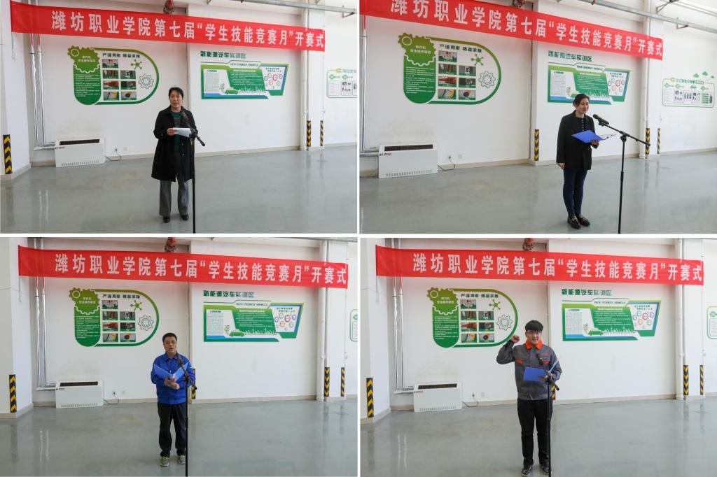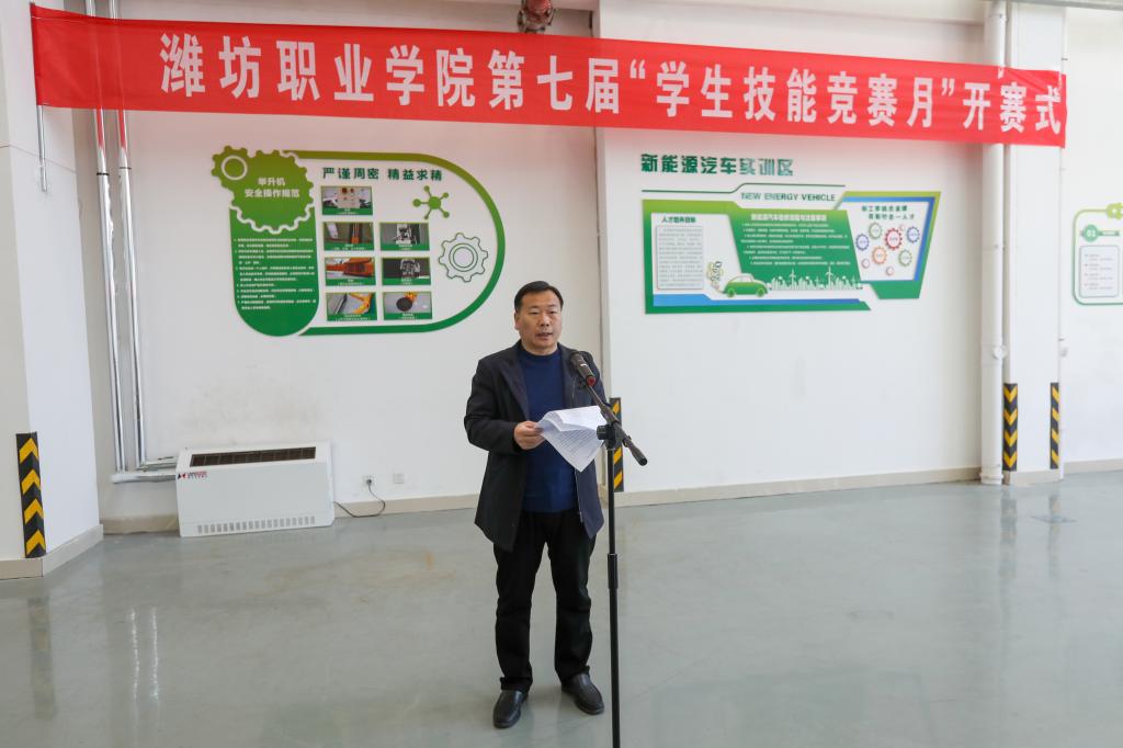贺志强致辞。他指出,近年来,学校坚持“面向市场、服务发展、促进就业”的办学方向,全面落实立德树人根本任务,聚焦体制机制创新、专业群建设、师资队伍建设、技术技能积累与社会服务、办学国际化等重点领域,全面提升人才培养质量和综合办学实力,在学生技术技能培养方面成果丰硕,打造了潍职技能竞赛品牌。希望各参赛选手认真比赛,赛出水平,赛出风采,赛出特色;全体裁判员忠于职守、严守规则、公正裁决;各赛项负责人组织到位,营造严格温馨的竞赛环境,努力把竞赛月活动办成有影响、高质量、有特色的赛事,为探索开放性、普适性竞赛机制趟出路子。