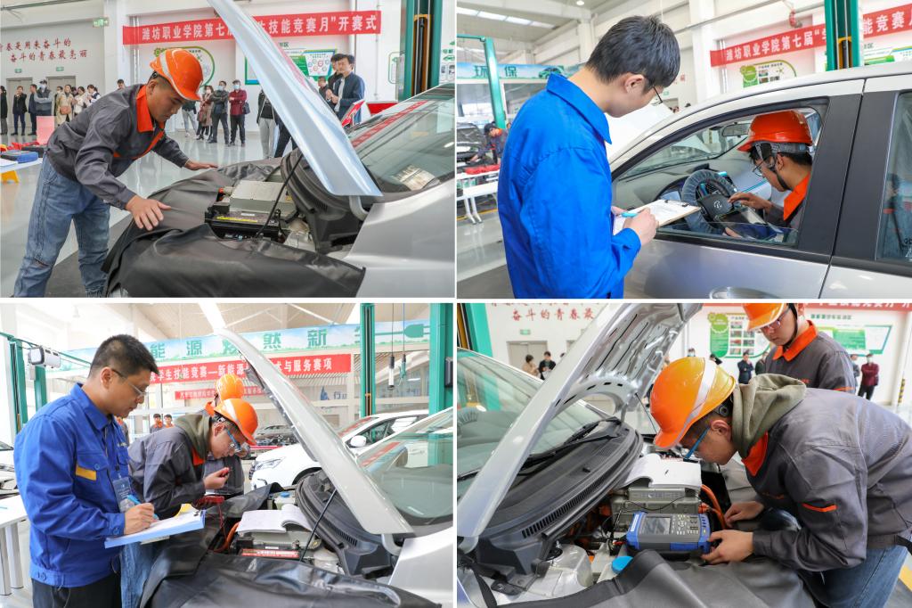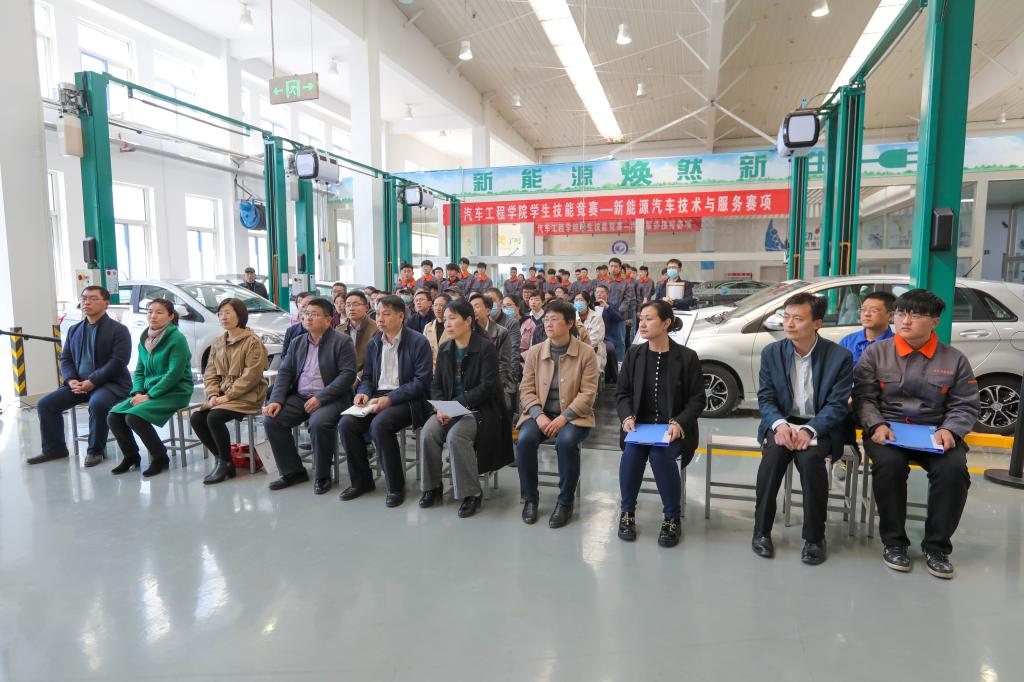 仪式结束后,学校领导和师生们一同观摩了汽车工程beplay(中国)新能源汽车技术与服务赛项比赛情况。