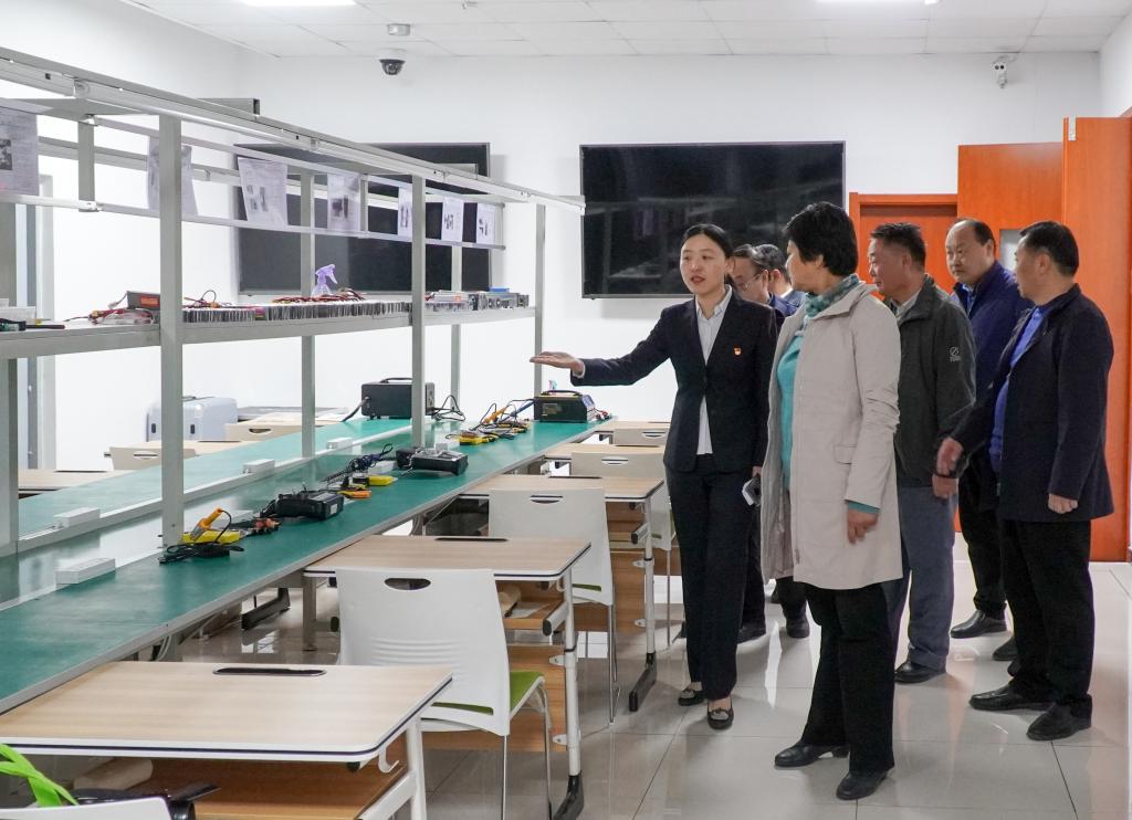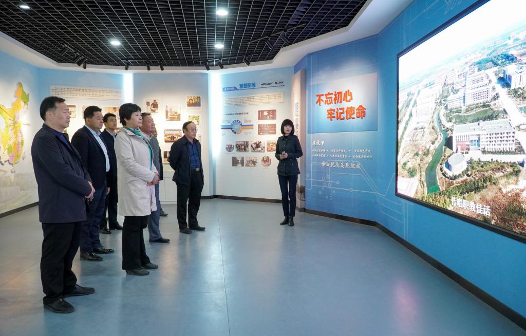 贺志强陪同参观学校校史馆和校内实训车间。(韩承晋供稿)