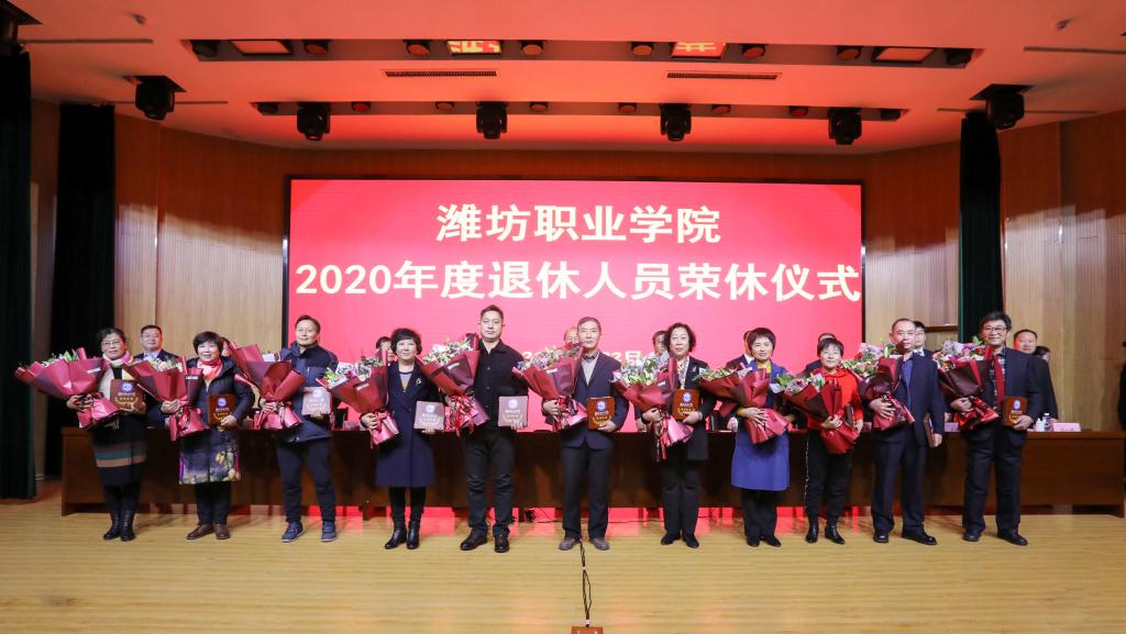 1月22日上午,学校2020年度退休人员荣休仪式在奎文校区16号楼报告厅举行。学校党政领导班子成员,学校2020年度荣誉退休的教职工、全体中层干部和部分教职工代表参加荣休仪式。
