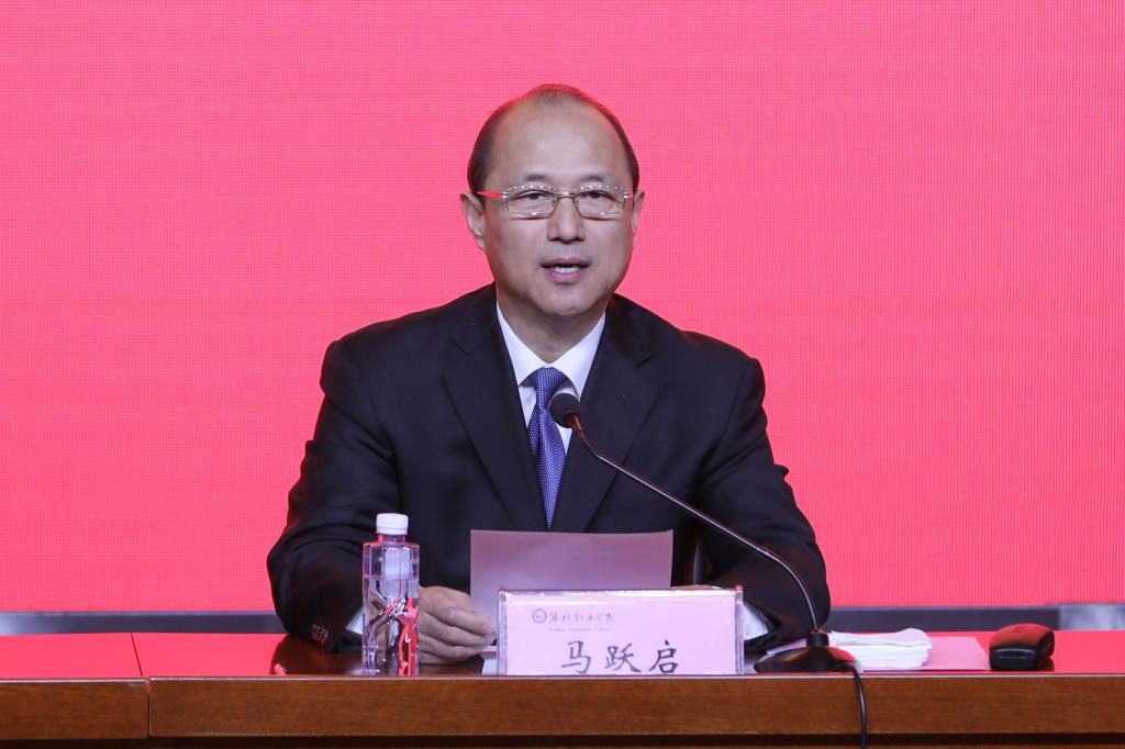 学校党委书记马跃启致辞。他代表学校2万余名师生员工向2020年度荣休人员表达了感谢和祝福。他表示,教职工荣休,对学校和教职工本人,都是一件大事。对学校来讲,教职工荣休,是教职工荣誉体系的重要组成部分,也是学校校园文化的重要内容。对教职工来说,荣休是对过去工作的总结和肯定,是个人事业最骄傲和光荣的时刻,也是人生幸福新生活的开始。他指出,荣休人员在不同的岗位上辛勤耕耘、默默奉献,留下了大好的青春岁月,留下了珍贵的奋斗业绩,光荣地完成了岗位职责和工作使命,为学校建设发展做出了重要贡献。你们离开工作岗位后,就踏上了人生的另一段旅程、开启了一种全新的生活。我衷心地期盼,今后大家能继续关心、关注和支持学校的事业发展,继续发挥余热,在专业建设、学术研究、教师指导等方面力所能及地提供帮助。