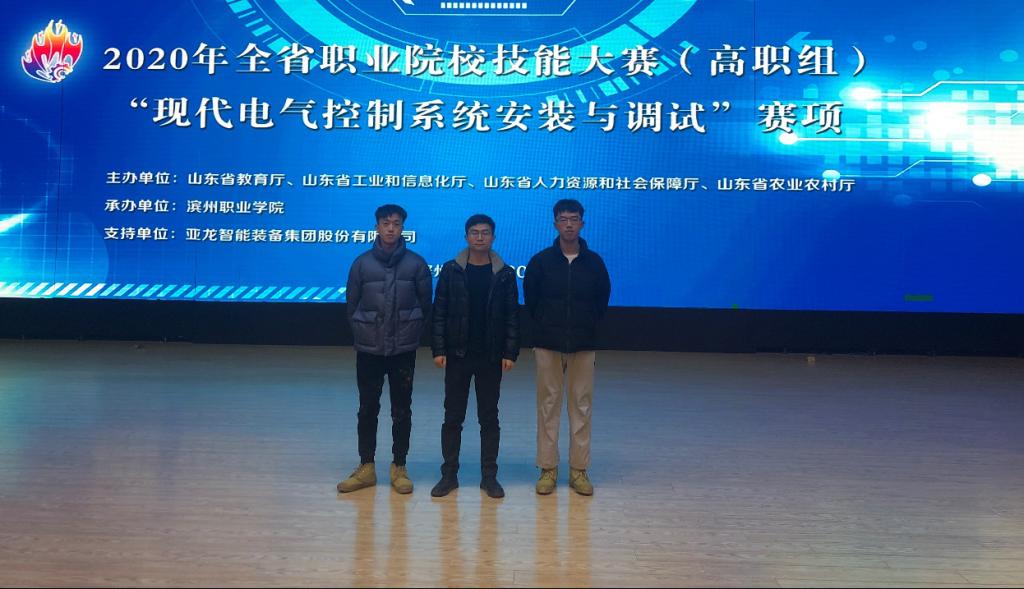 12月19日,2020年山东省职业院校技能大赛高职组“现代电气控制系统安装与调试”大赛在滨州职业beplay(中国)举行,全省40所院校参加比赛。机电工程beplay(中国)鲁成俊、吴硕2位同学在指导教师侯绪杰、石海龙的带领下,沉着应战、配合默契、操作娴熟,最终获得山东省高职组二等奖。