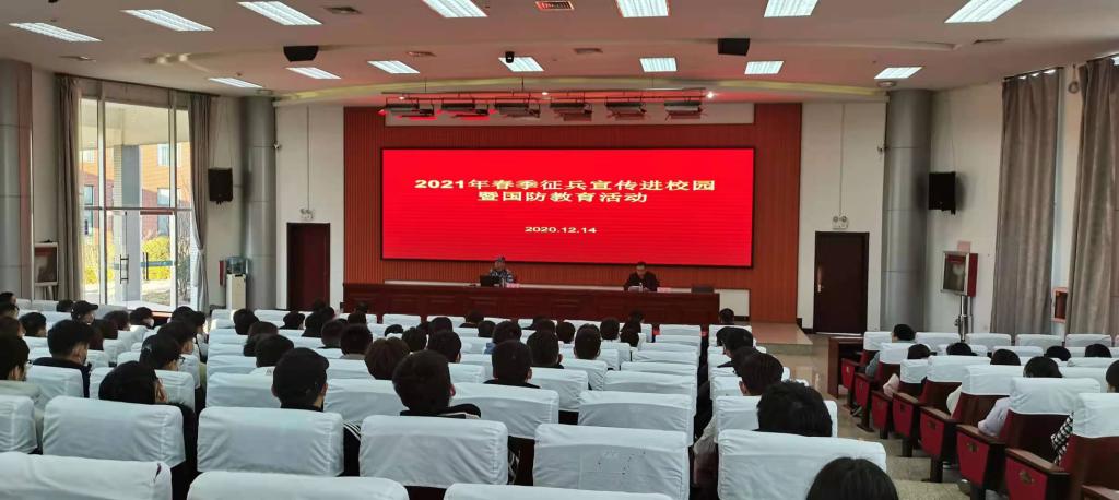 12月14日,应我院人武部邀请,寒亭区人武部政委郜添、参谋王红伟、宣传干事侯永传、武凯及滨海区发展软环境保障局副局长袁华文、武装干事冯伟到我院进行征兵宣讲活动。beplay(中国)党委副书记宋桂言出席活动,beplay(中国)人武部相关负责同志、国防教育教研室老师、二级beplay(中国)负责征兵教师、军事理论课任课老师及学生代表参与。