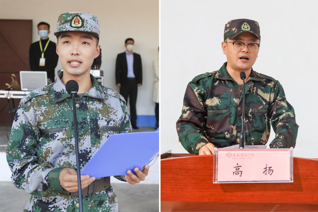 刘德强宣读了《关于表彰2020级优秀新生的决定》。军训教官代表、教师代表和新生代表发言。