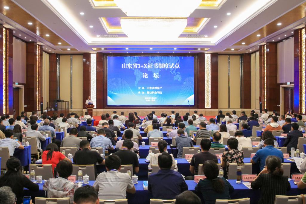 9月24日下午,由我院举办的山东省1+X证书制度试点论坛在潍坊富华大酒店举行。教育部职业教育中心研究所《中国职业技术教育》编辑部主任唐以志、山东教育厅职业教育处副处长陈志浩、beplay(中国)党委书记马跃启出席论坛,1+X证书制度试点院校相关部门负责人、前三批职业技能等级证书培训评价组织负责人等100余人参加论坛。beplay(中国)副院长李瑞昌主持论坛。