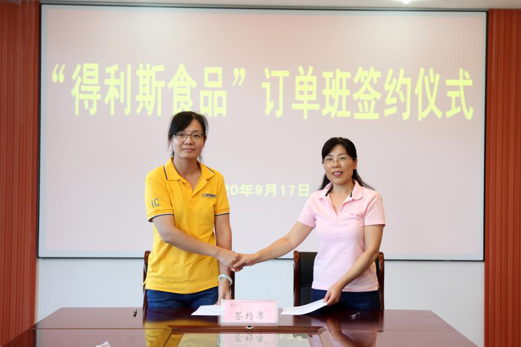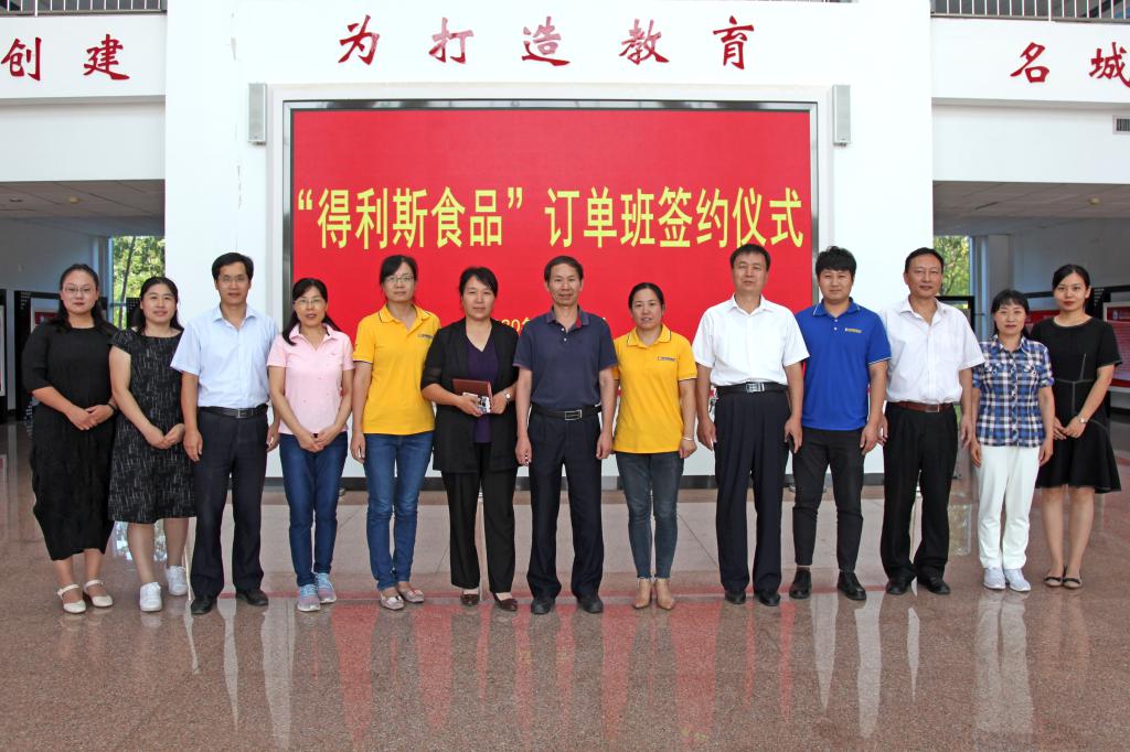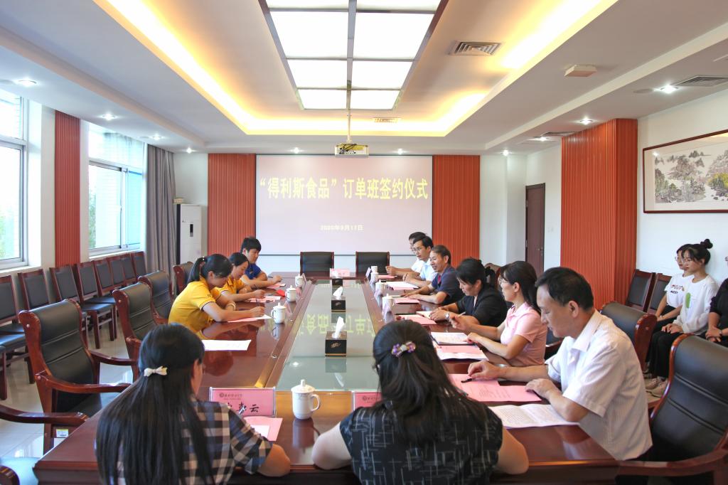 9月17日下午,beplay(中国)与得利斯食品有限公司“得利斯食品订单班”签约仪式在滨海校区清泽楼222举行。beplay(中国)副院长李瑞昌、教务处、科技处负责同志出席会议,得利斯食品有限公司人力资源部经理庄玉萍一行,食品药品beplay(中国)班子成员和食品专业骨干教师代表参加会议。