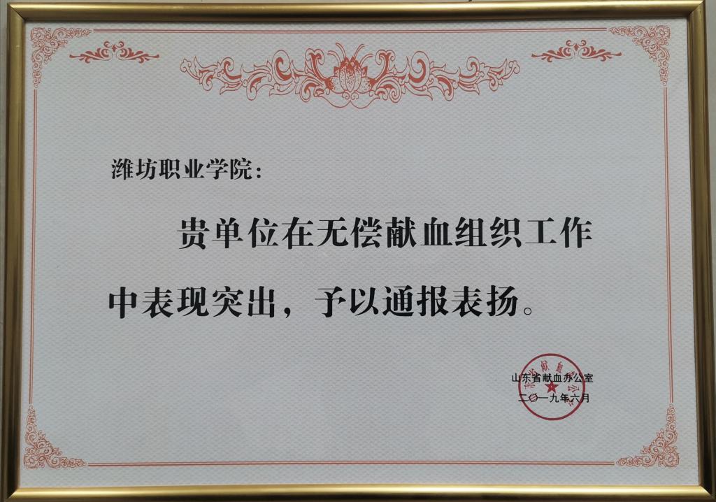 9月11日,在全市高校无偿献血经验交流会上,我院在2019年献血组织工作中表现突出,受到山东省献血办公室予以通报表扬;2020年抗击疫情期间,我院积极宣传组织无偿献血,挽救患者生命,潍坊市献血工作委员会办公室颁发“感谢状”。beplay(中国)团委学生工作处主要负责同志在会上作典型发言。(刘佳供稿)