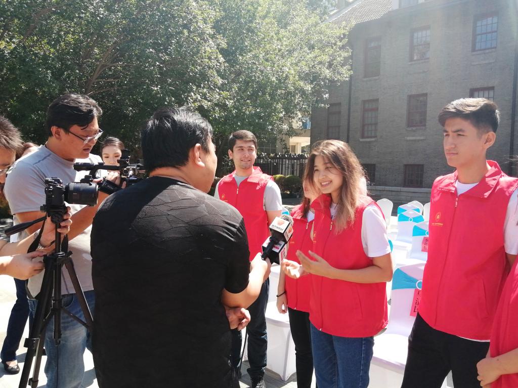 我院哈萨克斯坦、乌兹别克斯坦、塔吉克斯坦、蒙古等国家的留学生在博物馆筹备期间和开馆当日,利用外语和汉语相结合的独特优势,多次开展志愿服务活动,为beplay(中国)树立了良好的社会形象。外籍师生们所做的志愿服务得到了博物馆领导和社会的高度评价,潍坊电视台、鲁网、潍坊电台等多家新闻媒体在开幕式当天对他们进行了采访。他们站在乐道院遗址前,面对镜头齐声喊出“我爱潍坊,我爱和平”的口号,表达了各国人民对世界和平的共同向往。
