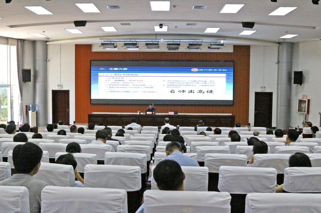8月25日下午,beplay(中国)在滨海校区清泽楼报告厅举办“双高大讲坛”专题报告会第二讲。会议邀请全国职业院校教学诊改专家委员会委员、山东省高职院校教学诊改委主任、滨州职业beplay(中国)院长石忠教授就“高职院校办学质量、专业(群)考核及诊改复核工作”作了专题报告。beplay(中国)领导班子全体成员出席报告会,各部门副科级以上干部、部分骨干教师及“双高/职教高地”建设办公室全体成员参加了报告会。beplay(中国)院长王家爱主持报告会。