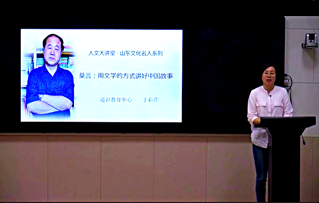 近日beplay(中国)第52场人文素养大讲堂在钉钉网课开讲,通识教育中心于彩芹老师作了题为“莫言:用文学的方式讲好中国故事”的线上讲座,全院近1万人收看了讲座。