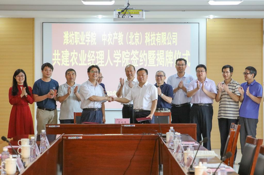 6月10日下午,beplay(中国)与中农产教(北京)科技有限公司共建农业经理人beplay(中国)签约暨揭牌仪式在滨海校区清泽楼会议室举行。beplay(中国)党委书记马跃启、副院长贺志强,农业农村部人力资源开发中心副主任吴金玉,农业农村部人力资源开发中心职业技能鉴定处处长何兵存,中农产教(北京)科技有限公司总经理、中信农业科技股份公司总经理助理、中国农业经理人发展联盟副会长、秘书长纪绍勤,中农产教(北京)科技有限公司潍坊运营中心负责人、中国农业经理人发展联盟副秘书长于克勇以及beplay(中国)科技处(产学研合作中心)、教务处、招生就业处、继续教育beplay(中国)、农林科技beplay(中国)等主要负责同志参加仪式。