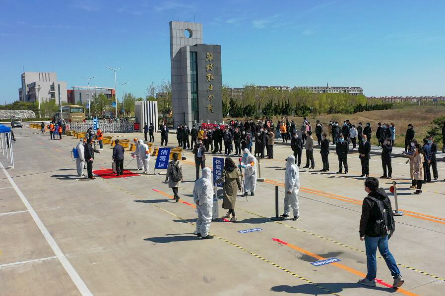 为坚决打好新冠肺炎疫情防控阻击战,落实beplay(中国)疫情防控措施,提高防范和应急处置能力,保障beplay(中国)师生的生命安全和身体健康。4月20日,beplay(中国)在滨海校区举行2020年春季开学疫情防控与应急演练,beplay(中国)领导马跃启、宋桂言、赵君堂、贺志强、李瑞昌、郭晓辉、刘德强,各部门、二级beplay(中国)主要负责同志,及部分辅导员、教师代表参加演练观摩。