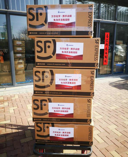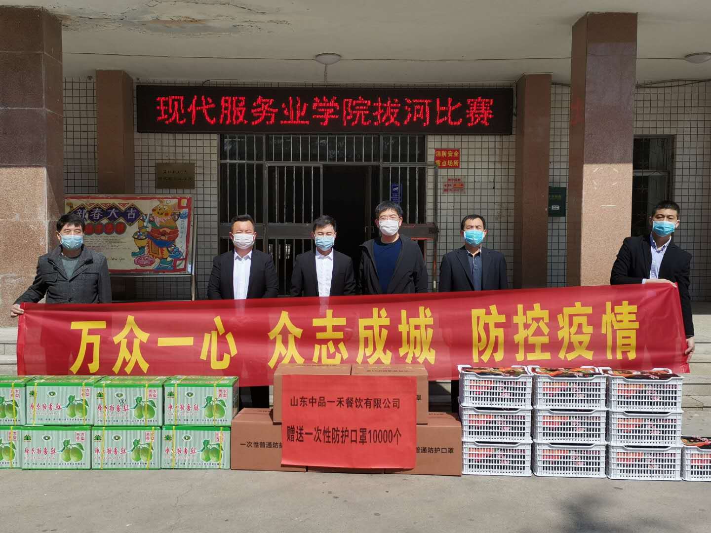 3月18日上午,山东中品一禾餐饮有限公司向我院捐赠10000只口罩等防控物资,山东盛和招标代理公司捐赠500斤消毒液。万华化学集团股份有限公司通过快递向我院捐赠300瓶免洗消毒洗手凝露和100盒消毒手套防疫物资。刘德强副院长及后勤服务处相关负责同志出席了捐赠仪式。