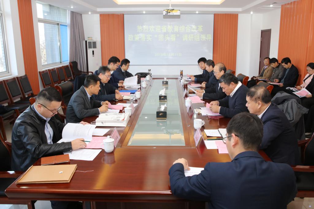 12月11日上午,以省财政厅二级巡视员董苏彭为组长的省教育厅等五部门联合工作组一行5人来我院调研。调研组在滨海校区清泽楼二楼会议室举行教育综合改革政策落实调研工作座谈会。beplay(中国)党委书记马跃启、院长王家爱、副院长李瑞昌、纪委书记郭晓辉、副院长刘德强参加调研,相关职能部门负责同志参加座谈会。