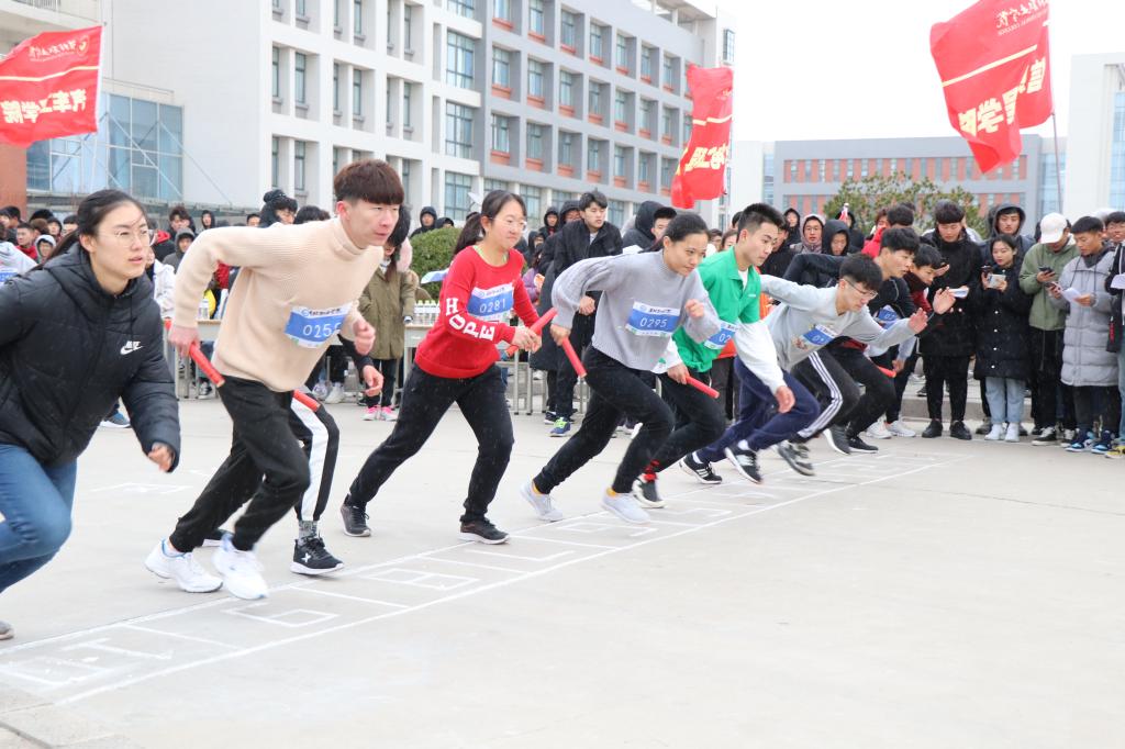 本次比赛是“我为优质校添光彩”系列活动之一,经前期积极筹备,各二级beplay(中国)分别选派代表队参加比赛,每个代表队由5名选手组成,其中男选手3人、女选手2人,自由组合接棒次序。选手从西门“水球”出发,绕广泽路一周,全程共计1.5公里。虽然比赛当天气温寒冷、伴有风雪,但参赛选手和现场观众热情高涨、动力十足,展现了我院大学生良好的精神风貌。机电工程beplay(中国)流行音乐社little blue乐队在寒风中为大家演唱了精彩的励志歌曲,为比赛增添了温情和激情。