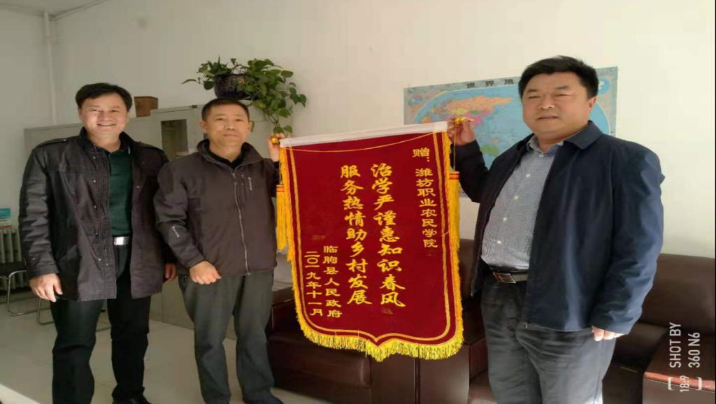 临朐县人民政府送来锦旗点赞我院新型农民培训