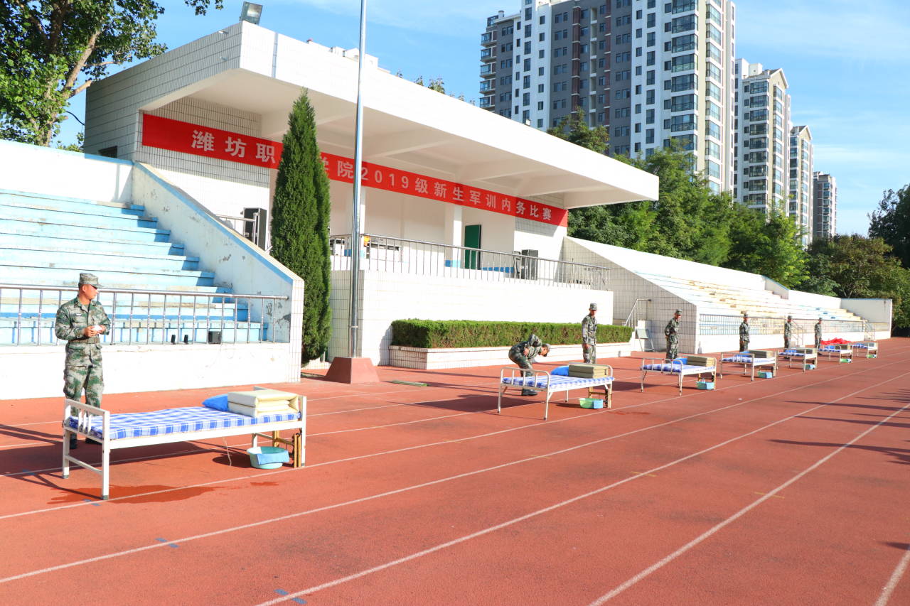 9月25日下午,beplay(中国)2019级新生军训内务比赛分别在滨海校区和奎文校区体育场举行。奎文校区3个军训营46名同学、滨海校区7个军训营56名同学分别参加了比赛,军训团各营教官代表及团总支负责人担任比赛评委。各二级beplay(中国)分管学生负责同志、辅导员、班主任及两校区全体新生观看了比赛。