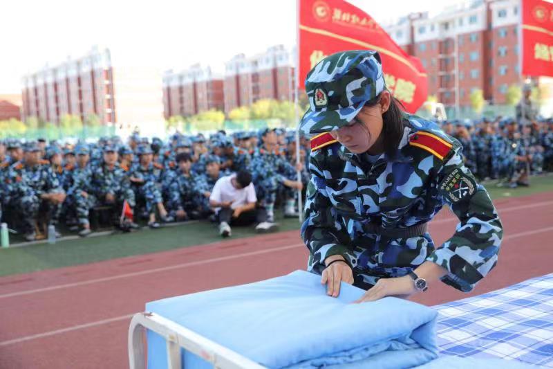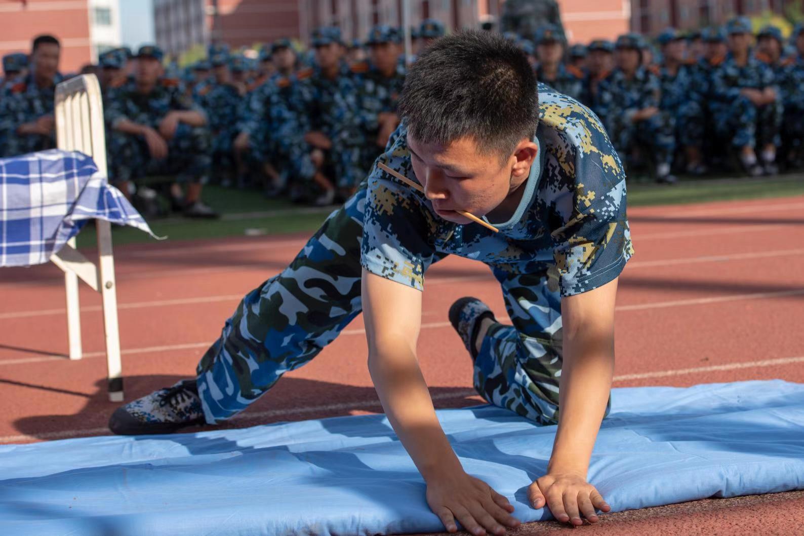 内务整理是军训中重要内容之一。通过内务比赛,不仅让学生对军队内务整理有了深刻的了解,学到了内务整理的技巧,也培养了良好的生活、行为习惯。 (李孟阳 华杰供稿)