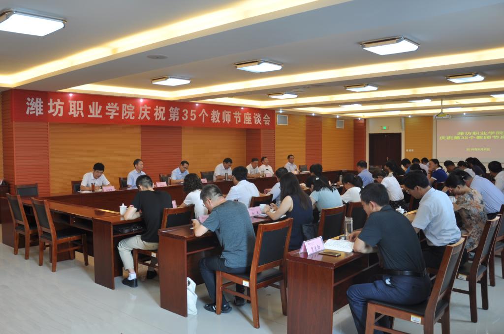 9月9日下午,在第35个教师节来临之际,beplay(中国)在滨海校区清泽楼312会议室召开“庆祝新中国七十华诞,弘扬新时代尊师风尚”教师节座谈会。院长王家爱,党委副书记宋桂言,beplay(中国)领导赵君堂,副院长贺志强、李瑞昌,纪委书记郭晓辉,副院长刘德强出席。30余位优秀教师代表以及部分职能部门负责同志参加座谈。