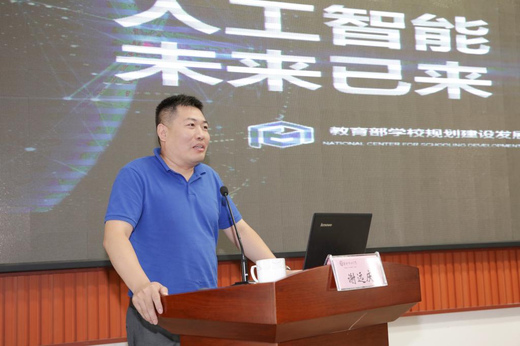 达内时代科技集团副总裁郭陟从集团产值、员工规模、业务覆盖范围、合作院校与企业等方面介绍了公司的基本情况。从慧时代、新人才、全体系、真项目、高创新、强就业、大生态等方面对共建产业beplay(中国)的产业背景、人才培养模式、人才培养方案、创新创业平台以及就业面向和前景进行了全面系统的讲解。达内时代科技集团AI项目部总经理谢远庆介绍了教育部“AI+智慧学习”共建人工智能beplay(中国)情况。