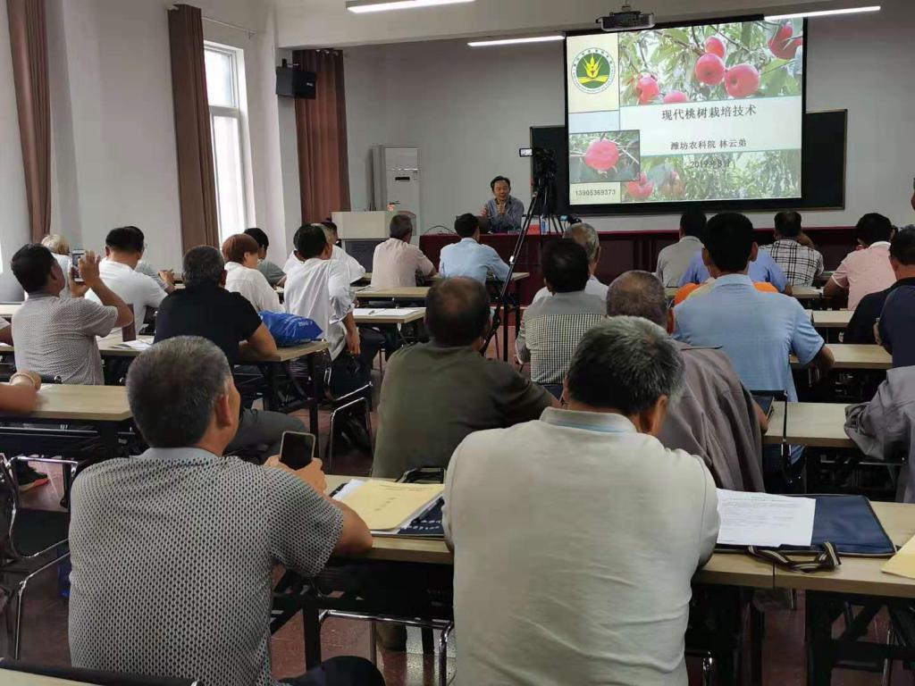 各位专家教授分别针对“桃树的栽培田间管理”、“樱桃高品质栽培生产技术”、“农业品牌方案策划及农产品营销方法”、“植物生理调控技术新概念”等知识作了深入浅出的讲授。
